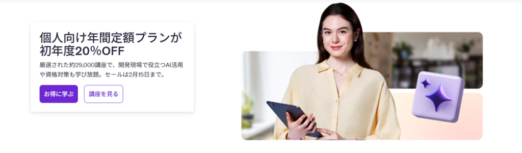 | 長期学習者向けのセール | 2026/1/14 | 1,500円~ |